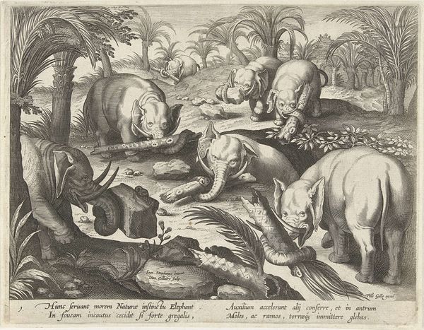 This print, made by Johann Hogenberg in the late 16th or early 17th century, uses the technique of engraving to create a scene of flora and fauna in a landscape. Engraving is an intaglio process; lines are incised into a metal plate, and these are filled with ink to make the print. The striking quality of the engraved line lends the image its crispness. Look closely, and you'll notice the artist uses varying densities of line to create tone and shadow. This painstaking process requires both considerable skill and time, suggesting a workshop setting. The print represents an artificial landscape, in which nature is neatly organized. A bear and artichoke are juxtaposed. The plants in the image have a symbolic meaning and practical use as ingredients in pharmacy and medicine. The very process of printing, which enables endless reproduction, parallels this impulse to manage and control the natural world. We are invited to imagine the world as an ordered display of useful specimens.
