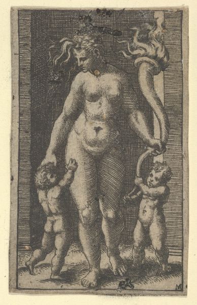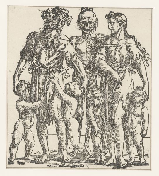 This engraving of a wild man and wild woman was created by Hans Guldenmund sometime between 1490 and 1560. In Renaissance Europe, images of wild people were popular, embodying a fascination with the untamed and the natural world. Consider the gender dynamics at play here: the wild man, holding a club, exudes a protective stance over the children, while the wild woman offers her child a stem with flowers. These figures stand as allegories of humanity in its rawest form, their bodies adorned with foliage, suggesting a life deeply connected to the forest. But what does it mean to be civilised? What are we without societal norms and expectations? The wild woman, in particular, challenges conventional ideas of beauty and femininity. She is strong, fertile and presented as an earthy mother figure. These figures prompt us to consider our relationship to nature, gender and the boundaries we draw between civilization and the wild within.