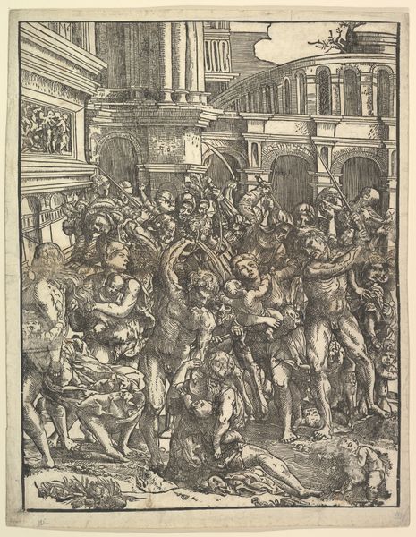 Nicolaes de Bruyn created "Eerste levensfase van tien jaar met spelende kinderen," or "The First Stage of Life, Ten Years with Playing Children," using etching techniques. Made around the turn of the 17th century, this print reflects the societal emphasis on childhood as a distinct phase of life. Here, De Bruyn captures a vibrant scene of children at play, which serves as a tableau of early life in a European city. The games they engage in, from riding hobby horses to playing with hoops, are imbued with innocence. This image reinforces the social norms and expectations of children, emphasizing a separation from the adult world. The division can be interpreted as a cultural construct that seeks to define and confine the experiences of children. But the image also offers us a chance to reflect on our own memories of play, of freedom, and of the messy social interactions that shape us. It presents the viewer an opportunity to consider the cultural norms that shape perceptions of youth.