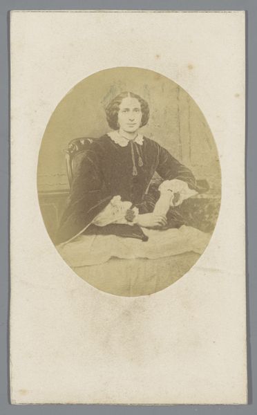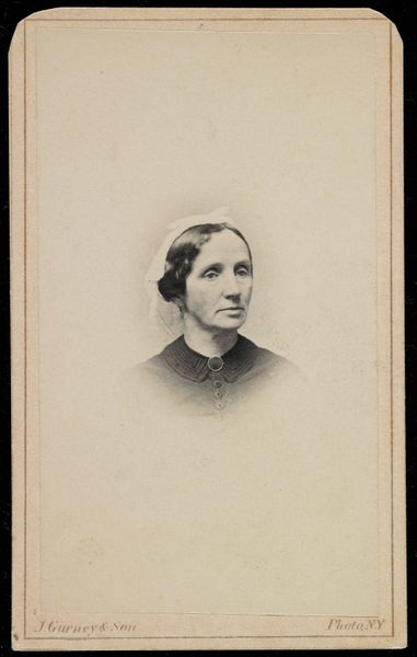 Curator: Here we have a photographic portrait of Peg-a-no-ke-shick, also known as Hole In the Day, a Head Chief of the Chippewa or Anishinabe people from Minnesota. It was taken by McClees Gallery. Editor: The sepia tones and oval frame give it a really antiquated feel, almost like a lost daguerreotype. There’s a definite air of forced assimilation, though. Curator: Absolutely, the imposed Western suit contrasts sharply with his braided hair, a potent symbol of cultural identity. It speaks volumes about the pressures placed upon Indigenous leaders during this period. Editor: It’s a visual representation of the push and pull between tradition and forced integration. He’s caught between worlds, and the photographer captures that tension so poignantly. Curator: Indeed, it's a window into a complex history, a reminder of the individual caught in the crosscurrents of cultural change. Editor: A stark reminder of the cost of erasure, and the continuous fight for self-determination.