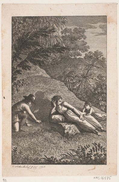 Curator: Felice Zuliani’s rendering of Saint Peter Martyr presents a dramatic scene of martyrdom. Editor: Yes, the composition immediately conveys a sense of brutality, doesn't it? The stark contrasts in light and shadow amplify the violence unfolding. Curator: Zuliani meticulously employs line and form, note how the dynamism in the figures creates visual tension. The angel descending from above provides a moment of ethereal grace, in stark opposition. Editor: It's fascinating to consider the tools involved—the plates etched, the ink mixed, the paper sourced. Each stage a testament to laborious craft traditions. Curator: Indeed. And consider the landscape, framing the narrative. This landscape is not mere backdrop, it reflects the emotional turmoil. Editor: I'm left thinking about the role of prints like this. Cheaply available, mass produced. A devotional image that would have reached wide audiences. Curator: The angel's intervention provides a counterpoint, injecting divine order into chaos. Editor: It's the juxtaposition of violence and serenity that makes this image so compelling. Curator: A work worth further contemplation, indeed. Editor: Absolutely. It encourages one to consider the labor and craft.