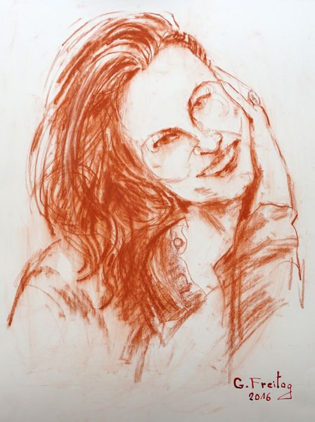 Editor: We're looking at "Majlinda Cakshiri," a pencil drawing by Gazmend Freitag, created in 2016. It has a raw, immediate quality. I’m curious – what strikes you about the material process here? Curator: What I find interesting is the accessibility of the medium itself. Pencil, paper – readily available tools. Freitag democratizes the process of portraiture. There's a deliberate focus on the graphite marks, the layering, almost exposing the labor involved in creating this image. Do you think this rawness affects how we view the subject, Majlinda? Editor: Absolutely! It moves away from idealized representation. I mean, you can practically see the artist's hand at work, the pressure and direction of each stroke. It doesn’t feel distant or polished, making it feel authentic. It really invites a connection, or at least a curiosity about the sitter. Curator: Exactly. And that gets at the heart of it. The simplicity of the materials directs our attention to the act of observation and representation. This approach almost critiques the highly mediated, often commercially driven, world of image-making we're constantly bombarded with. Do you see elements of skill versus accidents that drive your perception of Freitag as an artist here? Editor: Definitely skilled but very little is done to hide that these are the strokes that the hand made. So what do you mean critiques the highly mediated image making? Curator: With only a pencil, Freitag creates this. The act is free of layers between the viewer, subject and artist. You’re looking at something stripped to the basics! Editor: I never would have thought that I could examine a simple drawing this way, but it reveals much. Thanks! Curator: Agreed, thinking through process brings a fresh outlook.