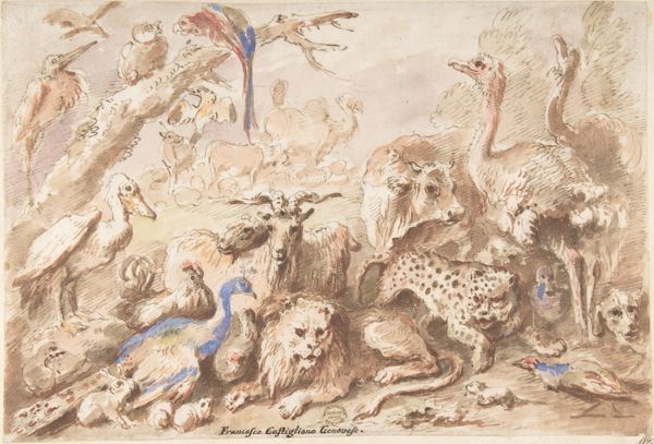 Johann Baptist Enderle rendered this drawing, Diana Resting after the Hunt, with watercolor and gouache. The work presents a complex tableau, seemingly frozen in an ornate frame. Its curved shape, combined with pastel shades, invites the eye to wander across the scene. The composition is divided, almost theatrically, into distinct planes. A prominent group of figures occupies the central space, while above, allegorical figures float among the trees. The use of line and color creates a sense of depth, drawing the viewer into the verdant setting. Yet, the flatness of the pictorial space reminds us that this is, after all, a constructed image. This carefully constructed arrangement calls into question traditional notions of perspective and spatial coherence. Enderle engages with philosophical ideas about representation, challenging the viewer to reconsider how images mediate reality. The drawing serves as a reminder that art is not a mirror reflecting the world, but rather a window through which we glimpse constructed realities.
