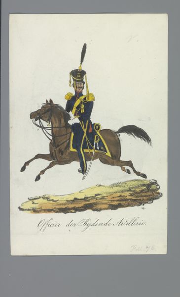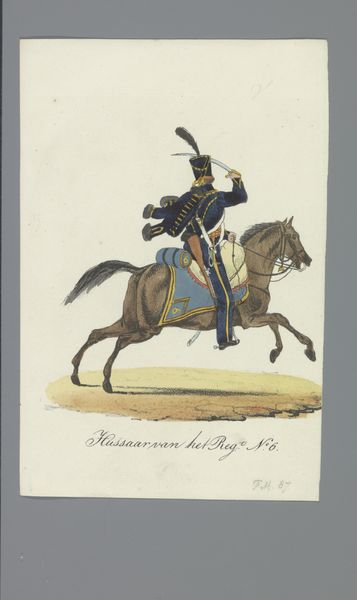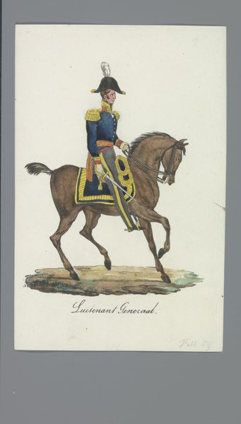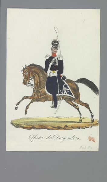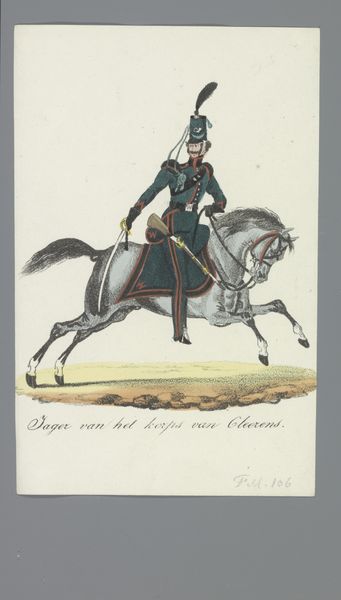 Albertus Verhoesen made this watercolor called ‘Light Dragoon’ on paper in the early 19th Century. It depicts a mounted soldier, likely intended to celebrate the Dutch cavalry. From a social and institutional perspective, this image embodies a militaristic and nationalistic pride that was common in Europe at the time. Consider that the Netherlands had only recently regained independence from Napoleonic France, so art like this played a key role in forging a sense of national identity. The specific details of the uniform and horse tack are also significant, as they reflect the importance of military symbolism in Dutch society. This art was made for a market that wished to see its values reflected in painting. We might look at newspapers and other images from this period to understand the artistic conventions.