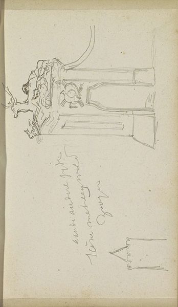 Editor: So, this is "Ornamentele omlijsting," an undated pencil drawing on paper by Willem Koekkoek, sometime between 1849 and 1895. The quick, sketchy lines give it such an ephemeral, fleeting feel. How do you read this image? Curator: I see this sketch as a product of its time, deeply intertwined with the academic art traditions. Its lines evoke a sense of classical authority and refined skill, reminiscent of architectural design and possibly state-sanctioned building projects, reflecting the socio-political structures in play at the time. But consider: for whom were these skills being practiced, and what power dynamics are at play in that process? What isn't represented? Editor: That’s a compelling way to put it. I hadn't considered the power structures embedded within seemingly simple ornamentation. The drawing seems like it might be incomplete or perhaps the initial design of architectural molding. Curator: Precisely! Consider the labour involved in transforming this sketch into reality. The people executing the final design aren't present. The absence speaks volumes. Does this change your reading of the drawing's lightness? Editor: Yes, it does. The absence feels heavier now, less spontaneous. What implications were embedded into the piece through design versus what was practically needed? I didn't even consider how much history this captures, hidden just under the surface. Curator: Indeed, and understanding those implications allows us to challenge the often-unquestioned authority and privilege encoded in artistic and architectural representations from this period. Editor: That is really insightful. I’ll never look at a sketch the same way again. Curator: Hopefully, it also enables you to question the role that visual culture plays in legitimizing, or resisting power.