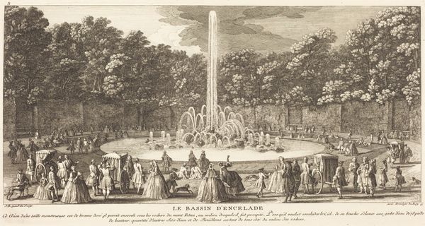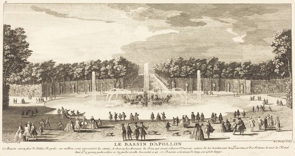 Jean-Baptiste Rigaud made this print, Les Domes, depicting a formal garden, sometime between the late 17th and early 19th century. The artist offers us a glimpse into the leisure and aesthetic values of the French aristocracy. Rigaud's print captures the intersection of power, class, and designed space. The domes and fountains speak to the period's obsession with order, control, and the artificial manipulation of nature, reflecting the elite's desire to mold the world according to their ideals. The garden is populated with figures dressed in finery, underscoring the visual spectacle of wealth and status. Such idealized representation of aristocratic life masks the social inequalities inherent to the French class system. Instead of offering a revolutionary vision, Rigaud's work reinforces traditional hierarchies by celebrating the opulence and artificiality of courtly life. In its own way, this print serves as a reminder of the complex relationship between art, power, and social identity.