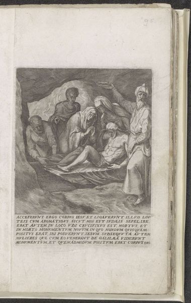 Editor: Here we have "Transfiguratie" by Jan (II) Collaert, created sometime between 1570 and 1646. It's an engraving. There's a definite hierarchy visually, with figures above and figures below. How do you interpret this work, particularly in relation to its historical context? Curator: This piece, "Transfiguratie", isn't just a representation of a biblical event. It's a product of its time, steeped in the social and political anxieties of the late 16th and early 17th centuries. Notice the style - mannerism, which often uses distortion and exaggeration. What statement do you think the artist is making with it? Editor: That's a great point! The figures *are* somewhat elongated and their poses feel theatrical. So, the distortion, in this case, can be viewed as an expression of tension and uncertainty of the historical climate at the time, as the artist explores it. Curator: Exactly! Consider the Reformation. Religious upheaval profoundly impacted European society. This image would have been viewed and interpreted through very different lenses depending on the viewer's affiliation and social standing. Those kneeling figures, overwhelmed by the divine presence—is that submission, fear, awe? Is the artist reinforcing power structures? Editor: It definitely gives me a lot to think about! The idea that even religious art is interwoven with the politics and social dynamics of the time it was created is eye-opening. Curator: Precisely! Art serves as a potent cultural mirror, reflecting and refracting the complexities of our world. Next time you encounter an artwork, consider not just what is depicted, but also *why* it is depicted that way. It tells us about the people who made it and the people for whom it was made. Editor: Absolutely, understanding those layers adds so much depth. Thanks for pointing that out! Curator: My pleasure! Every artwork invites a dialogue, a critical exploration of power, identity, and the human condition.