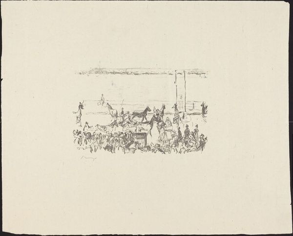 Max Slevogt captured this horse race in a swift sketch, a dance of lines depicting the dynamic spectacle of "Trabrennen V." Here we see the horse, a symbol of power and vitality since antiquity, pulling a chariot. Consider how in ancient Rome, chariot races were not merely sport but a display of imperial might, a spectacle to appease the masses. This symbol of speed and competition transcends eras, resurfacing in various forms from Renaissance equestrian portraits to our modern automotive obsessions. The cheering crowds, barely sketched in, echo the ancient Roman "panem et circenses," bread and games, the provision of basic needs and entertainment to maintain social order. This collective excitement, this primal urge to witness contests of speed and skill, connects us to our ancestors. Slevogt's sketch isn't just a depiction of a race; it’s a snapshot of our enduring human spirit. It speaks to the cyclical nature of our desires, our need for spectacle, a pattern ever resurfacing in the theater of human history.