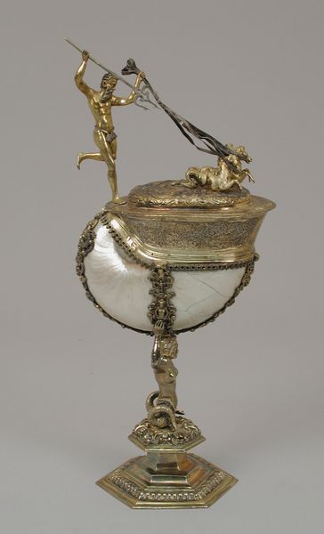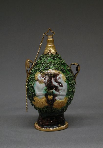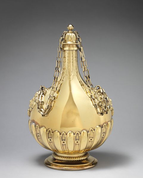 Editor: We’re looking at a Baroque silver pilgrim flask, crafted between 1675 and 1705 by I.P.S. This ornate metalwork really captures a sense of aristocratic elegance, almost ostentation. How would you interpret the significance of such a piece in its historical context? Curator: Well, consider that a pilgrim flask, by definition, suggests travel, possibly even religious pilgrimage. However, the sheer luxury of this object speaks to something far removed from humble devotion. It prompts us to question who would commission such an item? The flask, adorned with baroque detailing and fashioned from precious silver, signals the intersection of faith, power, and status within 17th-century European society. It’s as much about displaying wealth and influence as it is about any personal journey. What do you notice about the imagery itself? Editor: There are portrait medallions...so this wouldn't just be *any* traveler, but someone with status. It feels less about personal piety and more about performative identity. Curator: Precisely! The inclusion of portrait medallions and intricate engravings turns the flask into a portable billboard, broadcasting the commissioner’s identity and aspirations. How does seeing faith presented this way make you reflect on today's world? Editor: I guess the combination of faith and luxury still exists...mega churches and such. Curator: Absolutely. Objects like these encourage us to interrogate the evolving relationships between spirituality, material culture, and the socio-political landscapes they inhabit, both then and now. Editor: This makes me see the flask in a totally different light, not just as an object but a cultural statement!