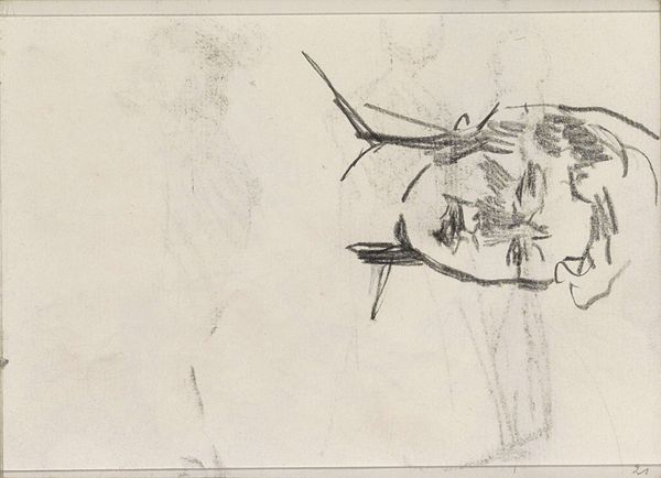 Isaac Israels made this drawing of an unknown man with a pair of glasses, using what looks like pencil on paper. I love how Israels uses simple lines to capture the essence of this man. The shading around the head and face feels very direct, like Israels was really trying to nail the light and shadow. It’s cool how you can see the different pressures he used to create darker and lighter areas. The glasses are a trip, aren't they? The cross-hatching on the lenses really gives them depth, like you could almost see through them. The paper is so bare, it's almost like the drawing is floating in space. The line that defines his neck and collar is so light and airy. It reminds me a bit of Degas, how he would capture these fleeting moments. This drawing reminds me that art isn’t always about perfection; it’s about process and what you can capture in a moment.