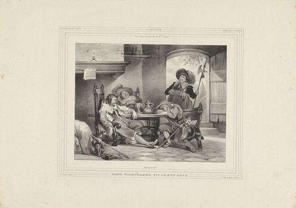 This print, "Hollandse keuken in de zeventiende eeuw," was made by Emrik & Binger sometime in the 19th century using a technique called lithography. Lithography is a printmaking process that relies on the subtle interaction between grease and water. The artist draws on a flat stone or metal plate with a greasy crayon, then applies water. The water adheres only to the non-greasy areas, and when ink is rolled over the surface, it sticks only to the greasy drawing. This inked image can then be transferred to paper. Lithography, which was invented in the late 18th century, democratized printmaking, allowing for relatively quick and inexpensive reproduction of images. The fine lines and tonal range of this particular print speak to the process's capacity to mimic the look of a drawing. Though this print simulates a scene of 17th century life, its own making is entwined with the rise of industrial production and visual culture of the 19th century. Appreciating the labor of the lithographer, along with the scene depicted, gives us a fuller sense of the print's place in history.