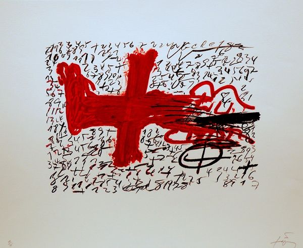 Editor: Bill Woodrow’s print titled ‘index page’ presents a collection of elemental symbols. The stark black and white palette gives it a powerful, almost confrontational mood. What strikes you most about this composition? Curator: The piece resonates with the post-war anxiety surrounding scientific advancement. Consider the potential of these elements, both constructive and destructive, within the context of Cold War tensions. Does this work feel like a celebration of discovery, or a cautionary tale? Editor: I see it now, the elements themselves are neutral, but the arrangement hints at potential dangers. Curator: Exactly. Woodrow prompts us to consider the societal implications of scientific knowledge and power and reflect on how we engage with potentially dangerous materials. Editor: That makes me rethink its meaning entirely. Thanks for sharing your insight.