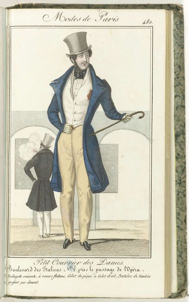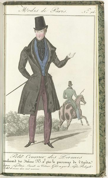 This fashion plate, published in France in 1829, presents a vision of masculine elegance through the attire of the era. The figure’s tall top hat is an emblem of status, yet the ensemble speaks to something deeper. Consider the subtle power imbued in clothing. Throughout history, what we wear has signaled our place in the world, echoing rituals of adornment seen in ancient cultures. This is not merely about fashion but about a profound cultural coding, a visual language of identity and aspiration. Think of ancient rulers and religious figures depicted in specific garbs to convey authority, divinity, or power. The top hat, the cut of the coat - these are the modern symbols of sovereignty in the 19th century. The collective memory of power continues to shape the cut and the attitude of the modern man. These garments reflect a deep-seated desire for self-expression and social standing. The image embodies a yearning for recognition, a perennial human theme in a cyclical, non-linear dance with time.