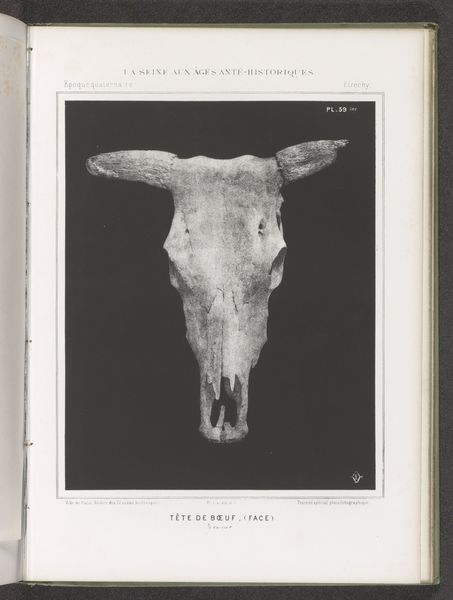 Curator: What we have here is a gelatin-silver print of a bovine skull in profile, a study made anonymously sometime before 1869. There's a stillness to it. What catches your eye first? Editor: Well, death, I suppose! That stark, bony grin... It's surprisingly beautiful, though, like architectural ruins. Evokes a certain melancholic awe, doesn't it? The shadows are almost sculptural. Curator: Indeed. Think about the historical context. The rise of photography coincided with significant developments in comparative anatomy and paleontology. Visual representations became powerful tools for scientific inquiry and classification. Editor: A beefy memento mori meets forensic science! The stark realism makes me consider mortality in a strange way, detached but still very present. It's clinical yet deeply personal—is that paradoxical? Curator: Not at all. The image embodies tensions inherent in scientific objectivity. It’s documenting anatomy, yes, but consider how photography itself was then understood. It aimed to mirror reality perfectly. The very process suggested an indexical link between the object and the image. Editor: Indexical… like an imprint or shadow? Makes sense! That clinical desire to capture life by confronting what’s left behind. It’s kind of unnerving how this clinicality is aesthetically powerful too! What was the image *for* at that time, specifically? Curator: These were often bound into reference volumes for students or used as comparative tools among scholars, though even in that purely utilitarian use the images held artistic merit. They straddled science, education, and aesthetics, subtly shifting ideas about artistic beauty and representational accuracy. Editor: I love that—both clinical and creatively daring! It's as if it wants to be a scientific document, yet there’s also undeniable aesthetic pleasure to experience, like an ancient poem rendered in bone. Curator: Well, perhaps its capacity to bridge disciplines is part of the lasting power of an image like this. Editor: A photo hiding in the skin of anatomy. How fascinating!