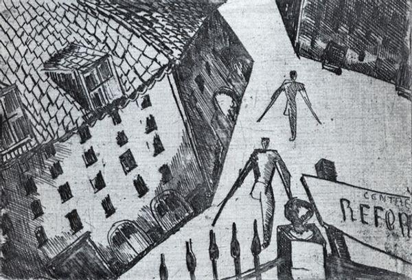 Curator: Stepping up to M.C. Escher's 1956 print, "Print Gallery", rendered in intaglio, one immediately feels pulled into multiple perspectives, an exercise in visual paradox, where reality twists and bends into self-referential loops. Editor: It’s dizzying! A total head trip. The eye jumps around, never quite able to find a solid place to land. It makes me feel like I'm in a dream where the architecture is just... fluid. Curator: That's quite Escher's intention, I believe. Look how he plays with our perception of space; a young man views a print in a gallery which then contains, impossibly, the very gallery we are ostensibly viewing. This effect challenges the very structure of representation, commenting on the cultural institutions that shape our art appreciation. Editor: Totally! It’s a mobius strip of a gallery. Is he mocking art's self-importance, its endless loop of creation and critique? And yet, even with the architectural tricks, there's this undeniable craft—the shading, the detail of the buildings. It sucks you in, even as it messes with your mind. Curator: Indeed. It's meticulously crafted chaos. Escher wasn't formally trained in mathematics, yet mathematicians have identified profound mathematical principles embedded in his compositions. There’s a bending of space based on complex geometries that speak to mathematics. Editor: It makes sense though right? I feel like so much math gets passed off as logical, but for a mind like mine its pure creative chaos to think about. Art isn't bound by Euclidean constraints. The emotional impact is… what’s the word… unsettling but awesome? You are kind of left seeing art galleries and museums as blackholes that we’re just destined to get sucked into eventually. Curator: Exactly. Escher provokes a deeper question about the framework through which we consume and categorize art itself. By implicating us, the viewers, within the picture, he underscores that we are all participating in constructing meaning from art. Editor: So it is like, a commentary on everything around art! And here we are adding another layer to that loop. You've expanded how I interpret this labyrinth, emphasizing art as this institutional framework that has these subtle but effective impacts on us that may otherwise go unseen, but all while in this insane vortex of mind-bending artistry. Curator: A perspective, which will evolve I hope, each time this work meets a new audience.