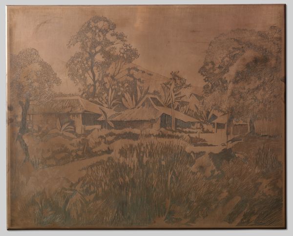 Editor: So this is "Huis van de Arabier, Buitenzorg" by Willem Witsen, from around 1921. It's an etching, and the linework makes it feel both detailed and somehow a little dreamy. What strikes you about it? Curator: It's fascinating to consider this etching in its socio-political context. Witsen, a Dutchman, depicting a house – likely owned or associated with someone of Arab descent – in Buitenzorg, now Bogor, Indonesia, speaks volumes about the colonial structures and their visual representation. What labor went into creating this image, transporting materials, both literally and figuratively? Editor: That’s an interesting angle. I hadn't thought about the colonial implications of depicting this scene. Curator: Exactly! Etchings, as a printmaking technique, also enable reproduction. Who was the intended audience, and what purpose did these images serve? Were they aimed at consumption back in the Netherlands, reinforcing a particular view of the colonies? Or could this etching have circulated among local elites in Java, and how might they have reacted to this imagery? Editor: I see your point. So the very act of creating and distributing this image is tied to systems of power and consumption? It’s not just a neutral landscape? Curator: Precisely. The lines etched into that plate speak of more than just a pretty picture. They speak of trade routes, social hierarchies, and the complex relationship between the colonizer and the colonized. Consider also the very materiality of the work – the paper, the ink. Where did these originate? Editor: This really changes how I see it. It's not just a serene scene but also an artifact loaded with colonial history and implications regarding production and consumption. Thanks! Curator: Indeed! Analyzing the materials and process opens a window onto understanding the bigger picture!