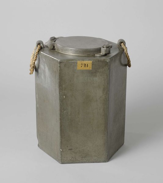 Curator: I'm immediately struck by the muted tone and restrained elegance of these metal tea caddies. They appear almost weighty despite their modest size. Editor: We're looking at a pair of inscribed tea caddies, dating back to the 17th century. They’re currently part of the collection at the Metropolitan Museum of Art. Attributed to the esteemed Chinese artisan Shen Cunzhou. Curator: There’s something profoundly symbolic in the careful containment of tea leaves. In Asian art, tea itself embodies ritual, contemplation, a bridge between the mundane and the spiritual. Editor: I am more intrigued by the craft. The metalwork suggests a complex process, especially given the period, the repetitive hammering and the joining of sections. What metal was used? Where was it mined? The social implications of tea, and therefore tea caddies, for both local use and global trade routes… It's staggering when you consider it. Curator: Precisely. Even the geometric faceting, the soft corners – they speak of harmony, an understanding of nature through formalized expression. The octagonal shape and vertical division of faces relate to ancient concepts of harmony and wholeness. One cannot overlook such a thoughtful deployment of inherited forms in such quotidian yet important items as tea caddies. Editor: And the inscription... a subtle yet decisive act. Adds labor, therefore value, while embedding ownership and a lineage of handling and use within the very fabric of these containers. What does it say? Is it an artisan's mark? A date of creation, or some aphorism? Each of these offers distinct information on production circumstances. Curator: Well, for me these humble objects tell us more about ourselves. They stand for a constant tradition, an effort towards social refinement, a kind of quest. Editor: For me, a beautiful container remains precisely that without an understanding of its fabrication in a particular economic context. Curator: Indeed, an intersection between cultural values, the symbolism behind traditions, and how our hands have shaped them over time. Editor: Which means, ultimately, we must inquire who were those hands, not just who putatively "designed" or oversaw creation of these items, if we're ever to adequately reckon with them in relation to the labor that produced such commodities.