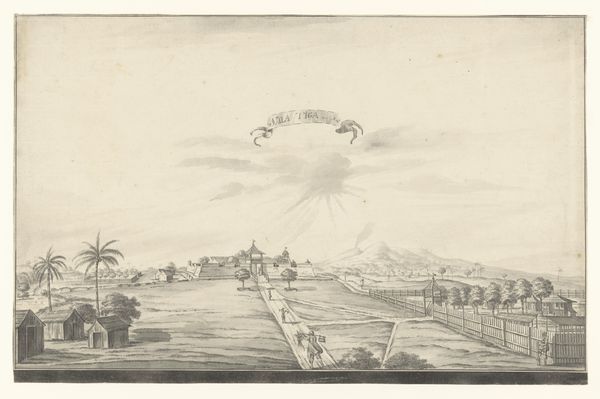 Editor: We’re looking at George Augustus Sala’s engraving from 1850, titled "The Great Exhibition 'Wot is to Be'". It’s quite intricate. There is something fantastical and yet oddly cynical about its depiction of the future. What do you see in this piece, considering its formal elements? Curator: Structurally, the piece is built around a clear visual hierarchy. The immense airship-like structure dominates the composition, drawing the eye upwards. Below it, Sala uses contrasting textures – the solid ground versus the delicate tracery of the Crystal Palace depicted both as a smaller dome below and hinted at within the "airship." The rigid symmetry also contributes, doesn't it strike you as stage-like? Editor: Yes, the symmetry is definitely striking! And those chopped trees in the foreground… almost like relics of a past being left behind. What’s the significance of that contrast, or the medium itself? Curator: The choice of engraving is deliberate, given its capacity for detailed lines and sharp contrasts. Sala exploits this to create a world of both impressive innovation, embodied by these geometric shapes floating above the city. The Romantic art of the period, which valorized feelings, had a preoccupation with ruins as memento mori or the relics of time - what does it do for the message? Editor: I hadn’t considered it from that perspective. The print's precise lines convey that supposed clarity, yet it hints at underlying instability… that maybe progress has its price. Thanks! Curator: Precisely. And the contrast highlights the tensions between ambition and apprehension inherent in a period of such rapid change. Looking at it through that lens helps to decode the complexity of its message.