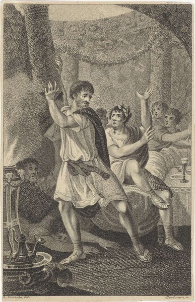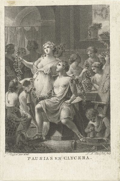 Editor: This is "The People Pressing to the Festival in Honor of Cato," an engraving by Lambertus Antonius Claessens from 1801. I find the composition really interesting – all these figures crammed together, pushing forward. It makes me wonder, what exactly are they so eager to see? Curator: That’s a great observation. To understand this piece, we need to consider its historical context. The late 18th and early 19th centuries were a time of revolution and upheaval. Neoclassical art, like this engraving, often looked back to Roman virtue and civic duty for inspiration and, more importantly, for models of political engagement and public virtue. Cato, a Roman senator known for his integrity and opposition to tyranny, became a potent symbol. Editor: So, the festival itself is a political statement? Curator: Precisely! Consider how academic art reinforces traditional power structures, often idealizing the past to legitimize the present. The 'pressing' crowd indicates both urgency and popular support. The engraving subtly hints at contemporary political anxieties. Note how Claessens chose engraving. Why do you think an engraving and not a painting? Editor: Well, maybe it allowed for wider distribution of the image and thus the political idea behind it. Like political posters. Curator: Exactly. Artworks can also be artifacts that illustrate public support of an idea, by means of purchase and distribution. These choices demonstrate its intent to be public. It's meant to be a piece that resonates beyond the gallery walls. Editor: I hadn't considered the public aspect of choosing engraving; that’s a very insightful observation about academic art and political discourse! Curator: Thinking about the purpose broadens how we understand art. Thanks for sharing thoughts!