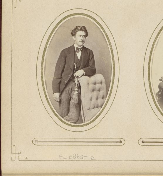 This is F.E. Perger's 'Portret van een vrouw', a small photograph where the sepia tones and oval frame give it an antique, intimate feel. The subject's profile, captured in soft focus, emphasizes the textures of her hair and the delicate frills of her high-necked dress. Perger’s formal arrangement isn't just aesthetic; it mirrors the structured roles within 19th-century society. The tight framing and muted palette create a sense of constraint, perhaps reflecting the limited sphere of women during this time. Consider how the formal structure reinforces cultural codes, presenting the subject within the prescribed boundaries of femininity. The very act of portraiture, then, becomes a semiotic exercise, where the sitter's identity is both revealed and constructed through the visual language of photography. The image invites ongoing interpretation of its subject and era.