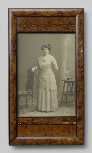 Frederick Southwell made this portrait of a woman, standing by a pillar with a photo frame, sometime around the turn of the century. It's a photograph, of course, but you can see how the artist has carefully composed the shot to create a sense of depth and atmosphere. It’s a process of layering dark on light on dark, but so subtly you almost miss it. Look at the way the light falls across her face and dress. The tones are so delicately balanced. You can almost feel the texture of the fabric, the soft shadows creating a sense of depth and volume. I like how the edge of the frame is visible within the picture, reminding us that every image is a construction. Even though it's a photo, you can really see the artist's hand at work in the arrangement. There's a quiet, introspective quality to this image, a sense of stillness and contemplation. And I think it's this sense of mystery that makes it so compelling. It reminds me a little bit of some of Gerhard Richter's blurred portraits, or even the early work of Luc Tuymans. It's about capturing a fleeting moment, an impression, rather than a definitive likeness.