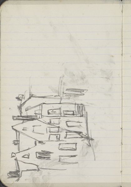 Editor: So, here we have "Abklatsch van een krijttekening," which translates to something like "copy of a chalk drawing," by Gerrit Willem Dijsselhof, from around 1901. It's a pencil drawing on paper, currently residing at the Rijksmuseum. My first impression is… architectural, maybe a bit like a faded blueprint. What do you see in this piece, someone who isn't as amateur as me? Curator: Amateur? Nonsense! You have sharp eyes. It *is* architectural, in a way, but I find myself drifting towards the abstract. The geometric shapes feel almost like a code, don't they? Dijsselhof was incredibly interested in the decorative arts; this could very well be studies for, say, a stained-glass window, a tiled floor, or even a wallpaper pattern, fragmented like memories or a dream. There’s a tentative quality, a searching – as if Dijsselhof’s figuring out the puzzle along with us. What strikes you most about the use of line here? Editor: That tentativeness, definitely. It doesn't feel forceful. And now that you mention it, I see a sort of rhythm, especially with the repeated hexagons. But is that abstraction common for this time period? It feels so modern. Curator: Ah, precisely! Around 1900, artists were itching to break free, to express inner realities rather than merely reflect outer appearances. Think of Mondrian’s early experiments; Dijsselhof was part of that same restless spirit. It's as though the image is dissolving even as it's forming. Perhaps this work has made you question what’s considered “finished?” Editor: Definitely! It’s like a glimpse into the artist's process. It felt incomplete at first glance but thinking about it, that gives it character. Thanks, I see it in a different light now. Curator: It’s funny, isn’t it? How a drawing, so light, so ephemeral, can teach us to look more deeply.