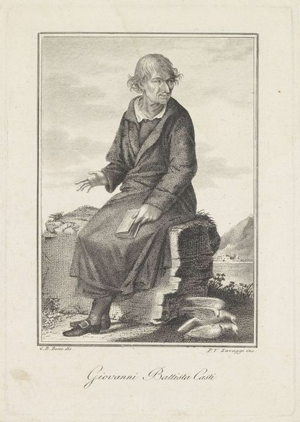 Editor: This is Georg Friedrich Schmidt's "Peter Grieving over the Betrayal of Christ." It’s a print, and the mood is undeniably somber. What strikes you about this work? Curator: It's the contrast, isn't it? The quiet stillness of Peter in the foreground, versus the chaotic drama unfolding behind him. The light seems to emanate from the figures escorting Christ, doesn't it? Like a cruel spotlight on Peter's failure. Editor: Absolutely, that light draws your eye right to that pivotal moment. Curator: Schmidt is inviting us into Peter’s internal world, that place of regret we all know so well. We’ve all been there, right? The keys at his feet, symbols of authority, now useless in his despair. Editor: It is so human. I see it now. Curator: That's the power of art, isn't it? Finding ourselves in these old stories. Editor: I will definitely keep that in mind. Thanks!