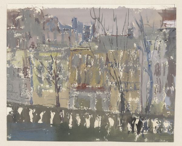 Editor: Here we have August Babberger’s drawing, "Two female groups," made with… what looks like chalk on paper. I’m struck by the… disjointedness. The composition feels very fragmented, almost like two separate studies mashed together. What do you make of it? Curator: Fragmentation is an apt observation. Note how Babberger bifurcates the plane, offering two distinct groupings. Observe the figures; simplified, almost abstracted, their forms delineated by stark outlines. Consider the chromatic tension – the cool blues and grays juxtaposed against the warmer greens and browns. Editor: So the colours create a separation, almost a visual argument, right? Are the blank faces of the figures also part of this fragmentation or… anonymity? Curator: Precisely. The reduction of facial features contributes to a sense of detachment. Babberger reduces the figures to fundamental shapes, exploring the relationship between form and color, not the individual. Is there a structural pattern that recurs within both groups? Editor: Well, each group of figures has very basic colour schemes. But it's not immediately apparent. I wonder if he's going for simplicity or something more chaotic. Curator: The apparent simplicity belies a sophisticated engagement with modernist aesthetics. Babberger employs a limited palette and flattened perspective. Are the structural forms, simplified as they might be, repeated and are they distorted within a coherent scheme? The answer lies within your observation, do you not agree? Editor: I do! Focusing on composition allows one to bypass the need to look at… anything else beyond line and form. Thanks! Curator: It is in deconstructing that structure wherein we glean new interpretations.