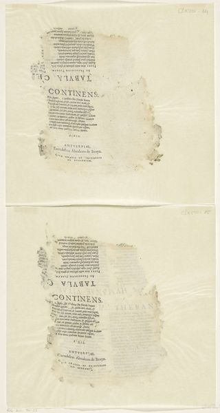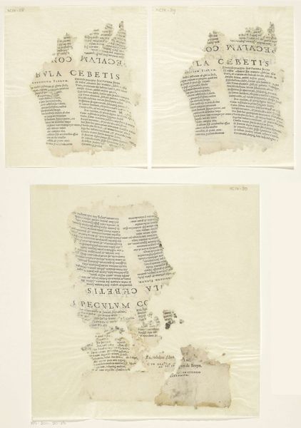 These are two fragments of text accompanying an image of the ‘Tafereel van Cebes’, made by an anonymous artist. The texts are in Latin, and the title refers to Cebes of Thebes, a Greek philosopher and student of Socrates. This work invites us to reflect on the narratives and knowledge that have been lost to history. The incompleteness of the fragments mirrors the gaps and silences within historical records, particularly concerning marginalized voices. The artist is unknown, leaving us to wonder about their position and perspective, their gender, class, or cultural background. The text hints at philosophical dialogues and moral lessons, yet their full context remains obscured, prompting questions about whose philosophies are preserved and whose are forgotten. Consider the fragility of these remnants. They evoke a sense of loss, but also resilience. Despite their fragmented state, they still carry echoes of past conversations. They challenge us to engage with history as a process of piecing together incomplete narratives.