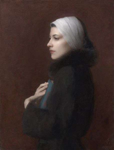 Alexei Harlamoff made this portrait with oil on canvas, using methods from the academic tradition. Observe how the material itself, oil paint, allows for the smooth blending of tones that gives the princess’s skin its life-like quality. Harlamoff’s technique involved layering thin glazes of paint to create depth and luminosity, a labor-intensive process requiring skilled brushwork to achieve the soft, almost hazy effect. This manner of painting was highly valued in the late 19th century. Consider the social context of this work. Harlamoff was known for his portraits of young women, often idealized and romanticized. These images, while seemingly straightforward, reflect the conventions of the time. The princess, with her delicate features and contemplative pose, embodies the era’s notions of feminine beauty. The very act of commissioning such a portrait speaks to the sitter’s social standing, as well as the artist’s position within a system of patronage and artistic production. Remember, understanding the materials, making, and context is essential to fully grasp this artwork’s meaning.