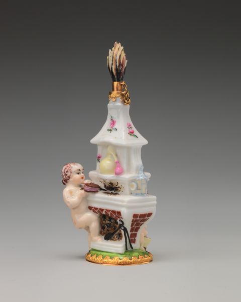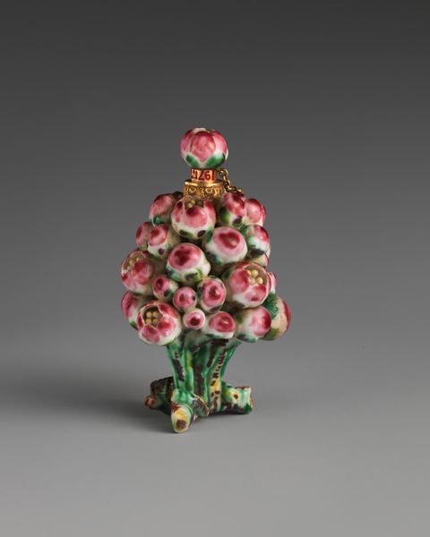 Editor: Here we have "Basket of Flowers" made around 1750 to 1760 by Saint James's Factory, using ceramic and porcelain. It’s charming. The colors are delicate, but the form seems intentionally overcrowded, almost chaotic. What do you make of its composition? Curator: Indeed. It’s crucial to consider the materiality and its manifestation in the final form. Notice the artificiality inherent in the porcelain. The sculpture's creator coaxes us into accepting artifice as something found in nature. Editor: So, the artistry lies in making the artificial look... natural? Curator: Not exactly "natural," but convincingly representational. The Rococo style itself favored artifice. See how the eye is guided through this work? There's a circular rhythm: From the base woven basket detail, through the cascading foliage, finally settling on that small, whimsical butterfly. Editor: The butterfly does draw the eye, doesn’t it? A focal point almost like a keystone in an arch. It’s not just decorative; it holds the composition together. Curator: Precisely. Note how the sculptor juxtaposes rough textures against the smooth glazed surface, thereby achieving contrast in this work. It highlights the performative element inherent in decorative art. Editor: The contrasting textures definitely make you appreciate the technical skill. It makes one consider how each piece has been made to fit together so beautifully. Thank you. Curator: An apt summation. Studying such details reminds us how artworks can be deconstructed via an informed gaze into its parts and brought back to whole by keen viewers such as yourself.