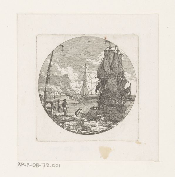Curator: This print, "Gezicht op de Vesuvius" by Israel Silvestre, probably made sometime between 1645 and 1691, renders the volcano as both majestic and ominous, especially with that cloud billowing above. Editor: It's incredibly detailed for an engraving. There's almost a sense of quiet, even though it's depicting something as potentially violent as Vesuvius. What stories do you think an image like this tries to capture, or is it pure landscape? Curator: It goes much deeper. Vesuvius was a potent symbol of nature's power, of course. Think about what volcanoes represented historically—destruction, chaos, but also rebirth and transformation. Silvestre's image likely served as a memento, connecting viewers with classical ideas of the sublime and picturesque but I think more about how trauma is negotiated through symbol. Is it a detached observation, or a reckoning with disaster, rendered beautiful? Editor: I hadn't considered the element of "disaster tourism" even back then. Was there perhaps a voyeuristic aspect to depicting something so dangerous in a palatable, artistic form? Curator: Perhaps. These kinds of landscape images created an aesthetic language, a way to process dramatic, often terrifying events and transform them into consumable, collectible images. The mountain looms, yet the everyday carries on at its base. Consider, what kind of power dynamics are at play here, and for whom was this image crafted? Editor: I never really thought about landscape having such a loaded symbolic history. Curator: Exactly! It invites us to see how visual symbols have changed, and what emotional and psychological connections continue to resonate today. Editor: Thanks, that gives me a lot to think about, looking beyond the surface!