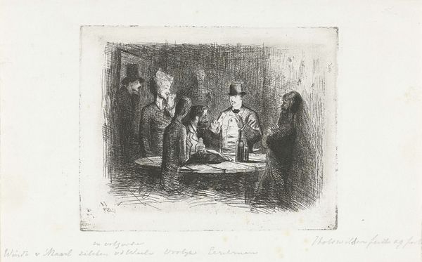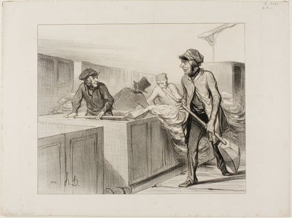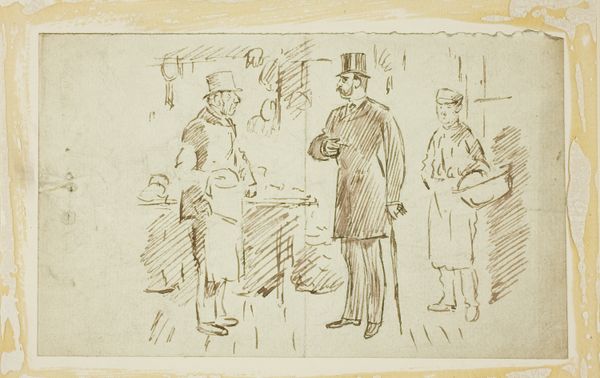 Jean-Louis Forain created this drawing, 'Chez l’Huissier', during the late 19th or early 20th century, capturing a scene rife with social commentary. Forain's focus on 'l’Huissier' - the bailiff's office - hints at the precarious economic conditions of many Parisians during this era. The artist uses stark lines to depict figures from different social strata: the well-dressed gentleman with his top hat and cane, and the more humbly attired man, possibly seeking assistance. Even the presence of a woman adorned with a fur boa suggests a certain level of bourgeois aspiration or, perhaps, a fall from grace. This image speaks to the sharp class divisions of the time, and Forain's choice of subject subtly critiques the institutions that upheld these inequalities. To fully appreciate Forain's social commentary, one might delve into the economic policies of the time, the legal structures affecting debt and poverty, and the broader cultural attitudes toward class. Only then can we grasp the full weight of Forain's critical portrayal.
