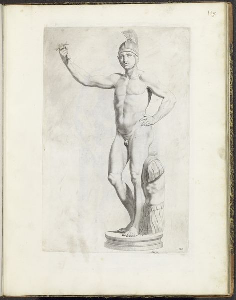 This print captures an ancient sculpture of Meleager, a hero of Greek myth, immortalized with his spear, hunting dog, and the head of the Calydonian Boar. The boar's head is particularly potent. The Calydonian Boar was sent by Artemis to ravage the land, a divine punishment sparking a heroic hunt. This motif echoes through time, reappearing in various forms, from medieval tapestries to Renaissance paintings, symbolizing man's struggle against primal forces. Consider the psychological weight of the hunt: a confrontation with untamed nature, a battle between order and chaos. The dog by Meleager's side—a symbol of loyalty and instinct—can be compared to similar representations of dogs with the goddess Diana, and other symbols linked to the hunt, suggesting a cyclical return of archetypal figures and their primal drives. Notice the emotional intensity—the hero’s poised stance, the boar's severed head, the dog’s loyalty. Such imagery creates a powerful force, engaging us on a deep, subconscious level. The symbols here are part of a cultural memory, constantly resurfacing, evolving, and taking on new meanings across history.