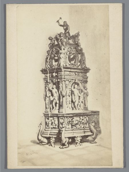 This is an anonymous photograph of the Epitaaf de Biest in the Grote Kerk te Breda. I’m intrigued by the way the photographer has used light and shadow to create a sense of depth and volume. It reminds me of how a painter might build up layers of paint to create texture and form. The texture of the stone is really brought out here, you can almost feel the roughness and irregularities of the surface. I like the way the photograph captures the weight and solidity of the stone. I’m drawn to the intricate details of the carving, like the delicate foliage and the faces of the cherubs. Each element is carefully rendered, yet there’s a sense of spontaneity and liveliness in the overall composition. There's something about the timeless quality of this photograph that resonates with me. It feels like a conversation across time, connecting us to the artists and craftsmen who created this beautiful work of art. I'm reminded of the work of Eugène Atget, who also documented the architecture and urban landscape of his time. Both artists captured the essence of their subjects with a sensitive eye and a deep appreciation for the beauty of the everyday.