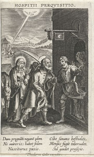 This print of Saint Bruno receiving a message from Pope Urbanus II was made by Sébastien Leclerc I. The artist employed engraving, meticulously cutting lines into a metal plate, to create an image of tonal gradations and fine details. This laborious process demanded considerable skill and time, a reflection of the traditional craft practices that existed alongside the burgeoning industrial methods of the era. Look at the way Leclerc uses line to describe the folds of fabric, the texture of the stone, and the distant mountains. Prints like this were produced in multiples and distributed widely, making religious narratives accessible to a broad audience. The work's material influence lies not only in its aesthetic appearance but also in its role as a vehicle for cultural and religious dissemination. By considering the materials, production methods, and the broader social context in which it was made, we can understand the significance of this print as a convergence of craft, religion, and emerging capitalist modes of production.
