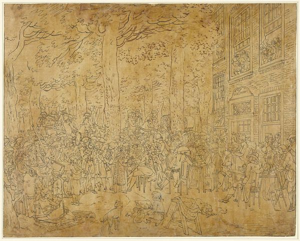 Editor: So, here we have "Plate five, from A Harlot's Progress," made by William Hogarth around 1732 to 1744. It’s an etching and drawing. The scene is really bleak; everyone looks miserable and there's such a somber atmosphere. What social commentary do you see Hogarth making here? Curator: This is a powerful image for understanding 18th-century London's social anxieties. Hogarth used his art as a mirror reflecting the moral decay he perceived. This specific scene, part of a series, showcases the consequences of a life led astray, but not without implicating the societal structures that enable such outcomes. Consider the figures present – what roles might they play, and whose interests do they represent? Editor: I see a clergyman, and some women… it feels like they are exploiting someone vulnerable. Are you saying that the elite and institutions of the time are being criticised for their role? Curator: Exactly. Hogarth was deeply critical of the social and economic inequalities of his time. These images were very popular as prints precisely because they spoke to the anxieties and hypocrisies present in society, whilst entertaining viewers from diverse social classes. To some degree it both critiqued, and cemented, existing values. He questions whether those in positions of power truly act in the best interest of those they are meant to serve, or whether they are complicit in a cycle of exploitation. Editor: That makes a lot of sense. I hadn't really thought about how prints themselves could be a form of social commentary, just by being accessible to a wider audience. I see the complexity of his approach. Curator: And the prints also contributed to Hogarth's own rise as a recognized artist, reshaping the market for art. These were images for public consumption. Understanding the institutional framework is critical for grasping art's power. Editor: I guess I was so focused on the narrative, I didn't fully appreciate how the artwork itself operated within its society. Curator: Indeed. It's a reminder that art doesn't exist in a vacuum, and thinking about how socio-political forces shape both creation and reception provides critical perspectives on the work and its lasting impact.