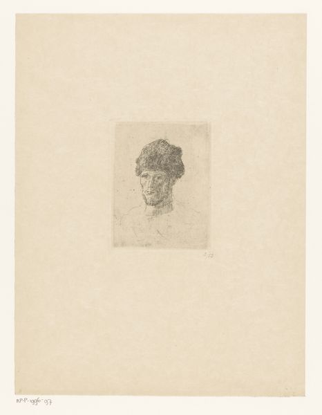 Editor: This is Robert Frederick Blum’s "Jennie Gerson" from around 1880. It's an etching, so a print on paper. It feels so immediate and intimate, like we're catching Jennie in a private moment. What do you see in this piece? Curator: Oh, the beauty of etched lines! It's as though Blum whispered her essence onto the paper. I see a world of quiet observation, a gentle probing of personality. Doesn't it feel as though we are invited into a hushed confidence? He caught the spirit of her youth, I suspect... like a fleeting memory caught in the light. Does she seem at all melancholic to you? Editor: Melancholic, yes, perhaps a touch. There’s something about her eyes, the way they aren't quite focused...or maybe thoughtful? It's hard to tell. The sketchy quality adds to that sense of ambiguity, doesn’t it? Curator: Exactly! And that's the beauty of the etching process, isn't it? That soft focus. Blum wasn’t aiming for clinical accuracy; he wanted to capture a mood, a feeling. It reminds me a bit of how we see people in our dreams: familiar but just out of reach. Did Blum succeed at evoking the inner life? Editor: Definitely. I like that comparison to dreams, the etching style suits that sense of a hazy memory, perfectly. I’ll remember to think about mood and artistic choices rather than strict realism next time. Curator: Precisely! It’s about the dance between observation and the artist’s interior world. Sometimes, it seems, that the truest portraits are those that dare to whisper, not shout. Don't you think?