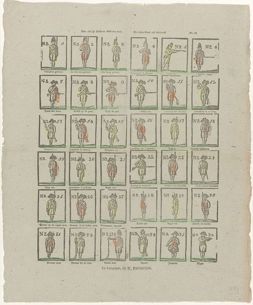 Johan Noman created this print, titled "For children who want to learn the exercise / From these images / The manual is shown in its entirety in this picture panel," using an unspecified technique. This print offers a glimpse into the militaristic education of children. Notice the grid-like arrangement of figures demonstrating a sequence of military exercises. This instructional format reflects the societal emphasis on discipline, order, and the preparation of young boys for potential military service. Consider how this imagery might normalize violence and instill a sense of duty towards the state from a young age. The inscription suggests that these images are specifically designed for children, indicating a deliberate effort to shape their perceptions and values. How might such early exposure to military culture affect a child's understanding of conflict and identity? This print serves as a reminder of the complex ways in which power structures influence the socialization of youth and the perpetuation of cultural norms.