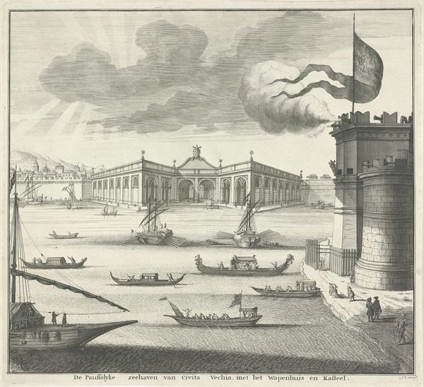 This engraving pictures a monumental fountain in a basin or canal, crafted by an anonymous artist. The image evokes the formal gardens of the European elite, where the power of humankind is imposed upon the natural world. Notice the way the fountain transforms the water into an architectural display. This kind of image probably comes from the 17th or 18th century, when landscape was viewed as something to be controlled and ordered, in parallel with the social order. It's a far cry from the romantic idea of nature which developed later. The canal isn’t just for show; it's a route for transportation, subtly reinforcing the idea of human mastery over the environment. To understand this image, we need to examine the context in which it was created, delving into period texts, landscape designs, and social histories. Through that historical lens, we can really grasp how art reflects and shapes the values of its time.