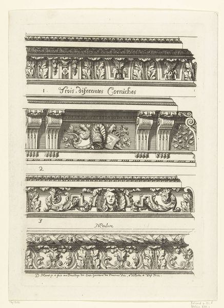 Curator: Here we have "Facade with Caryatids," a print attributed to Marcantonio Raimondi, created sometime between 1502 and 1534. It's an engraving on paper. Editor: The initial impression is striking. There's a sense of profound stillness, even melancholy. The figures, so rigidly placed, emanate an austere beauty. It feels like a monument to forgotten histories, evoking themes of gender and societal structures. Curator: Precisely. Look at the composition. The two tiers, the strict geometry of the architectural elements. It’s a fascinating study in Renaissance ideals of order and proportion, drawing heavily on classical Roman architecture. The use of line is exquisite. Notice how Raimondi varies the density of the hatching to create a sense of depth and shadow. Editor: While I agree about the technical mastery, I’m drawn to what this façade *represents*. Caryatids, women burdened by architectural weight—literally supporting the structure. It speaks to the roles and expectations placed upon women in that era. And that central bust... Curator: That bust creates a strong focal point. Its presence shifts the reading of the facade, doesn't it? The symmetry and clear arrangement around it evokes feelings of stability. Editor: Absolutely, but the idealized portrayal and her prominent placement also suggest themes of power and authority. Consider the period. We must also consider how these depictions served political and social functions— reinforcing existing hierarchies or perhaps subtly subverting them. Who was this “ideal” woman Raimondi had in mind? Curator: That tension, I think, is what makes the work so compelling. The technical precision versus the more ambiguous narrative. The figures stand guard, and it makes you think about power as a set of aesthetic choices. Editor: And that choice becomes a social statement. Curator: Yes. Looking at Raimondi’s façade with this lens, we start to observe its layered complexity. Editor: Layers that resonate through history. This façade mirrors not just classical ideals, but also, in its rigidity and constructed nature, prompts us to investigate deeper structural inequalities.