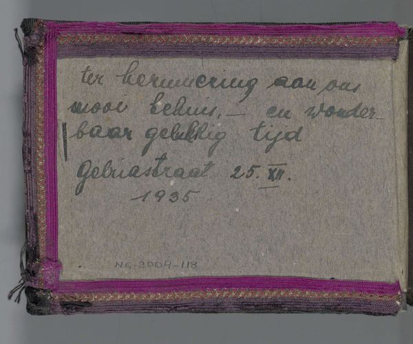 Reinier Willem Petrus de Vries created this design for a logo for a bookseller's association using an unknown medium. What stands out immediately is the use of a muted green against a beige backdrop. The simplicity speaks to an interest in modernist design. The design consists of an inscription of the organization's name across three lines. The inscription's encasement features a slight concavity on either side, adding a subtle architectural dimension to the emblem. This geometrical element adds a layer of complexity. One might consider the structuralist idea that meaning is derived not just from the content but from the system of relations. Here, the text provides the explicit message, yet the abstract form communicates the underlying values. The design leaves us to consider how form and function unite to represent the values of a booksellers' association. The logo is more than a label: it's an invitation to decipher how design shapes meaning.