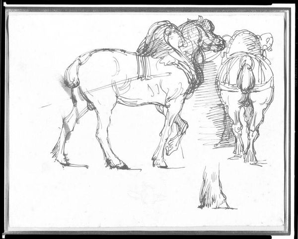 Curator: Here we have Picasso's "Bull (plate I)" from 1945, a charcoal drawing currently residing at the Museum of Modern Art. What are your first impressions? Editor: Stark. It feels raw, almost elemental. Just a bull rendered with aggressive strokes—charcoal digging into paper, I imagine. It’s incredibly direct in its reduction, though. Curator: Absolutely, it's about reduction! The image progressively simplifies the animal's form from eleven states of lithographs into this drawing. We move from representation to the pure essence of "bull." I think about its cultural connotations during a time when Spanish identity felt complex. Editor: Right. Materials here speak volumes. Why charcoal? Because it is immediate and easily sourced, a democratized form, or because the final work looks like stone etching. Also, notice the layering. How many passes to get that heft of shadow, that particular muscular bulk and sense of mass? How does this immediacy clash with our romantic ideas about his technique? Curator: Precisely! Picasso embraces both control and chance. It feels so impulsive but, behind it, you know is an exhaustive process. Look closely, and you might also find a sensitive bull—a being more melancholic than imposing! That heavy body has a slight stoop. He's been through things! Editor: You've pinpointed something essential, that stoop—but it still misses the means, like the surface itself. We are assuming an expensive archival paper, correct? What impact does it create versus newsprint? Consider how paper scarcity due to the war affected even established artists' access to standard supplies? Did the austerity of the period have bearing on that final reduction? Curator: An intriguing perspective, but it is ultimately the emotion. A post-war bull could never be just the materials used! What if this image becomes a poignant metaphor about endurance during times of collective uncertainty, regardless of the paper quality or production conditions? Editor: Perhaps, and while metaphor surely emerges, I like focusing on the conditions from which he made and sourced the work! Thinking this way pulls Picasso closer. Curator: In the end, there is so much possibility that we must experience it directly and deeply! Editor: I like to experience, feel the paper. That is what lasts in the end, or not!