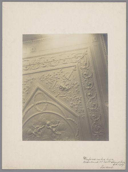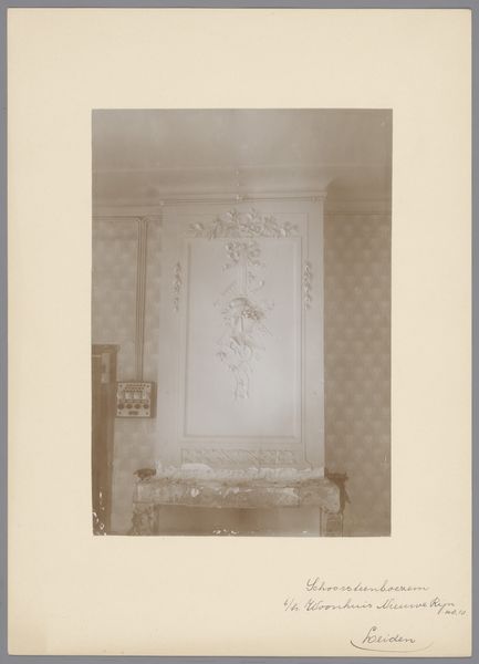 This photograph of a chimney breast in Leiden, was taken in January 1911. The sepia tone gives it a ghostly quality, like a memory fading at the edges. What strikes me is the contrast between the ornate plasterwork and the rough, unfinished state of the fireplace. The floral details seem to cascade down the wall, frozen mid-bloom. But below, the raw materials are exposed, the bones of the structure laid bare. It makes me think about the layers of construction, the hidden work that goes into creating beauty. Look at the detail in the plaster, the way the light catches the curves and crevices, each one built up with tiny gestures. I see echoes of 18th-century French interiors, but there's also something unsettling about its emptiness, a sense of absence. Think about Bernd and Hilla Becher and their photographic typologies. Monumentenzorg, the anonymous photographer here, invites us to consider how documentation shapes our perception, turning the everyday into something worthy of preservation and contemplation.
