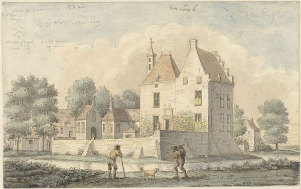 Editor: Here we have Paul Sandby's "West Gate at Canterbury," made after 1780, a watercolor, pencil, and ink work. The muted colors create such a peaceful scene, and I am interested in how the architectural forms are arranged. What is your take on it? Curator: I see it primarily as a study in contrasts, skillfully mediated by tonal control. Note the severe geometry of the gate against the more organic rendering of the foliage, for example, and how the pencil underdrawing defines forms, upon which the watercolour adds depth through subtle variations in washes. Editor: The detailed rendering is indeed eye-catching! It feels like the structure is grounded in very real and permanent features. But the soft lines blur everything, doesn't it? Is this a common attribute of the style, blurring harsh structural features? Curator: Precisely. Observe how the artist creates aerial perspective, with forms receding into the distance through progressively lighter washes of colour and softer edges. Do you notice how this reinforces a sense of depth and spatial coherence? Sandby masterfully exploits the medium's inherent properties to create illusion and realism. Editor: The use of multiple mediums certainly accentuates the architecture. Overall, there is incredible attention to the qualities and structure of art, accentuating form over realism! Thank you! Curator: Indeed, analyzing formal structures allows us to unlock deeper meaning within the composition, highlighting the enduring importance of technique and form.