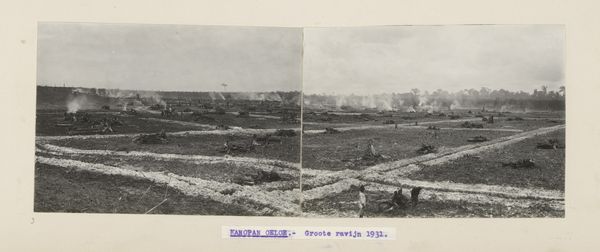 Curator: Looking at this stereoscopic albumen print by Ferrier Pére-Fils et Soulier, the initial sensation is a somber one. Editor: Somber indeed. The monochromatic palette and wide, almost desolate landscape evoke a sense of industry clashing with nature. What are we looking at here? Curator: It captures the construction of the Suez Canal in Egypt between 1867 and 1869. The photographic clarity offers a surprisingly realist document, while hinting at the exotic with its suggestion of "Orientalism" for the contemporary Western viewer. Editor: Ah, yes, those giant draglines... Almost like skeletal beasts, they loom over the landscape, reflecting in the canal waters. They seem to embody the ambition and even ruthlessness of industrial progress. And that horizon, the endless sky – is it hopeful or indifferent? Curator: Precisely. Consider the symbolism—water as both a source of life and a conduit for commerce, but also representing division, the physical act of splitting land to forge a new path, one that connected Europe and Asia in an unprecedented manner. The Canal immediately shifted global trade routes and accelerated colonial enterprises. The draglines are also powerful symbols here. Editor: So, while technically a landscape photograph, it's really a political statement about humanity's power over geography. The almost ghostly quality of the print enhances that. Curator: Absolutely. This work represents more than just a construction project. It presents the complexities of modernity and empire through symbols like the draglines which stand as testaments to engineering hubris, simultaneously awe-inspiring and a bit menacing. Editor: I find that complexity really engaging. It resists a straightforward celebration of progress, inviting us to ponder the social and environmental costs lurking beneath the surface. Curator: Ultimately, this photograph challenges viewers to critically assess how such infrastructural projects have reshaped our world—not only geographically but culturally and politically as well. Editor: It's a striking reminder that even seemingly neutral documentation can carry profound symbolic and historical weight.
