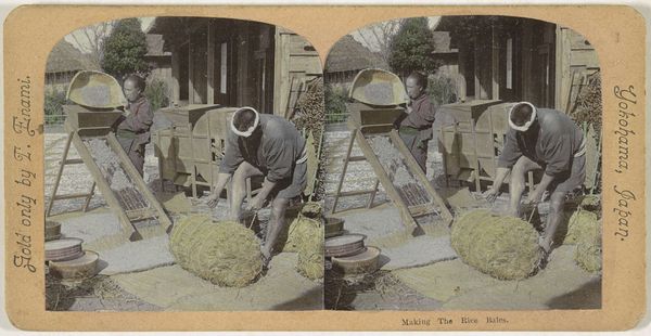 T. Enami made this hand colored albumen print in Japan, and the surface feels like a drawing. The coloring is applied in a way that suggests intention, but also the freedom of a sketch. The pastel hues are soft, with the greens in the foliage being especially muted. It’s like the colors themselves are whispering a secret, hinting at the scene without shouting. Look at the way the light seems to fall on the figure drawing water from the well, there’s a beautiful interaction between the pale blues and grays in the robes, that emphasizes the ritualistic action. It makes me think of artists like Gerhard Richter, who also used photography as a starting point, blurring the lines between reality and representation. Ultimately, the piece asks us to consider how we look, and how we perceive the world around us. The colors work in tandem to evoke a sense of quiet contemplation.