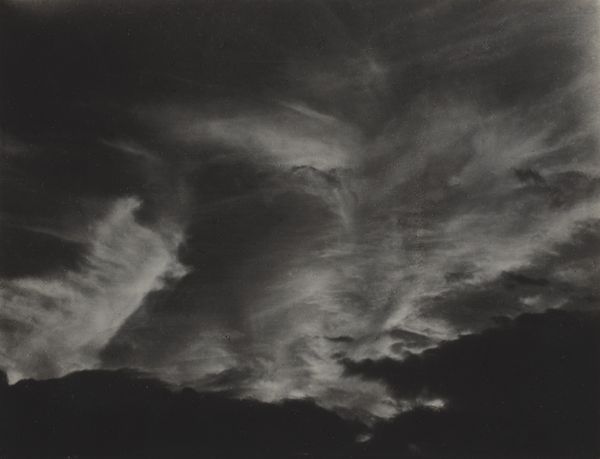 Alfred Stieglitz made this gelatin silver print, Equivalent, sometime in the first half of the 20th century. Look how the feathery marks of the clouds stretch and bend across the frame. I can almost feel the wind that shaped them. Stieglitz was interested in finding equivalents in the world around him for his inner feelings, and the way he plays with light and shadow in this image is really evocative. The contrast is so strong. It feels like the clouds are emerging from the darkness itself. It's hard to tell exactly what's going on in the lower section, but the darkness is punctuated by these tiny, glowing marks that provide a grounding, even as they are obscured. It reminds me of the way Joan Mitchell uses light to punctuate her fields of colour. Like Mitchell, Stieglitz shows us how the most basic elements, like light and shadow, can carry profound emotional weight. It all adds up to a feeling, something that transcends the literal depiction of clouds.