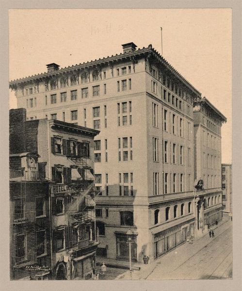 Editor: Here we have Jessie Tarbox Beals's photograph, "Housing Conditions in Newark, New Jersey," from around the turn of the century. It seems like a straightforward depiction of a tenement building, but the more I look, the more oppressive it feels. What do you see in this image? Curator: Precisely. Beals, as one of the first female photojournalists, wasn't simply documenting; she was engaging in social commentary. The starkness, the looming structure, the children clustered on the corner - all speak to the socio-economic realities of the time. Consider the role of photography itself in shaping public perception of urban poverty. Editor: It's interesting how the image, in its plainness, becomes a powerful statement about living conditions and perhaps even a call for change. Curator: Indeed. Understanding the image as a product of its time reveals how art can function as a crucial element in social and political discourse.