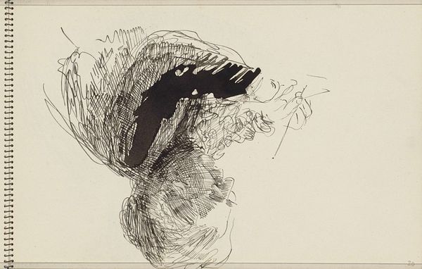 Curator: Looking at this sketch, what's your initial impression? Editor: It's so energetic, isn't it? There's a real sense of movement in the lines. They’re quite dense, almost chaotic. The artist uses hatching to define the form, but it’s loose. It has a quality of incompleteness, almost like the sketch isn’t quite finished. Curator: Indeed. We are looking at a pencil drawing by Carel Adolph Lion Cachet. This study, which goes by the title "Handwerkende Joanna Lion Cachet-Cordes," dates from around 1935 to 1940, and it offers us insight into the artist’s process. Editor: Tell me more about it. Who is this woman? What's she doing? What does this quick sketch communicate to the audience? Curator: Cachet-Cordes was the artist's mother. Considering the time it was made, it might offer a subtle commentary on domesticity and women’s roles, especially given Cachet’s social circles in the Dutch artistic scene. The rapid strokes speak to a capturing of everyday moments, but potentially of stifled female potential within a confined, domestic sphere. The frantic hatching seems almost desperate when read this way. Editor: I see what you mean, but I also find that energy exciting on its own merit. Looking at it formalistically, the hatching actually works to define a very particular play of light and shadow. Note the ways the lines almost caress the woman’s profile. The formal language seems much more intimate and gentle than the implications you are drawing from it. Curator: But isn't the historical and social context always influencing even our purely aesthetic interpretations? A formalist approach sometimes risks stripping the art from those crucial layers of meaning. How can you appreciate that hatching fully without considering the cultural climate in which it was made? Editor: The act of looking is about seeing. We read from those lines an effort at capturing light and volume, even with simple pencil strokes. Surely, this directness communicates most powerfully the nature of artistic gesture, as seen outside social issues. Curator: I disagree—but I admire the economy of Cachet’s lines, capturing essence. Thank you. Editor: Likewise. The composition makes one wonder what the artist was seeing, and how the shapes took place in time. Thanks!